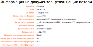 Dəfələrlə SSRİ-nin müdafiyə nazirliyinə və müharibə zonalarına müracətlər edilsə də hər dəfəsində eyni cavab alınıb.